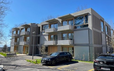 Appartement de 4½ pièces au rez-de-chaussée supérieur comprenant hall, cuisine agencée, séjour, trois chambres, réduit, salle de douches/WC, salle de ..